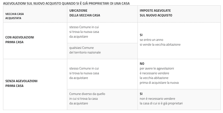 Dal 1 gennaio 2016 la legge è cambiata: l’acquirente può godere dei benefici dell’agevolazione Prima Casa anche se già proprietario di un immobile acquistato con la stessa agevolazione, purché la casa già in suo possesso sia venduta entro un anno dal nuovo acquisto.