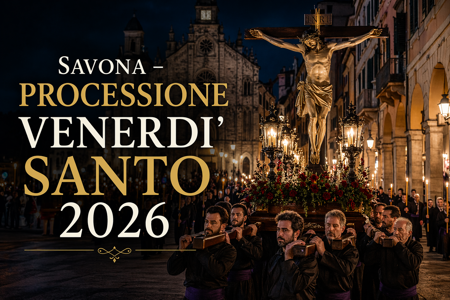 L’edizione del 2025 si terrà venerdì 18 aprile, con partenza alle ore 20:30 dalla Cattedrale Nostra Signora Assunta. Il percorso prevede il transito per via Caboto, piazza Cavallotti, via Gramsci, piazza Leon Pancaldo, via Paleocapa, corso Italia, e arrivo in piazza Sisto IV. In caso di condizioni meteorologiche avverse, la processione non avrà luogo e gli oratori rimarranno aperti fino alle ore 23:00.